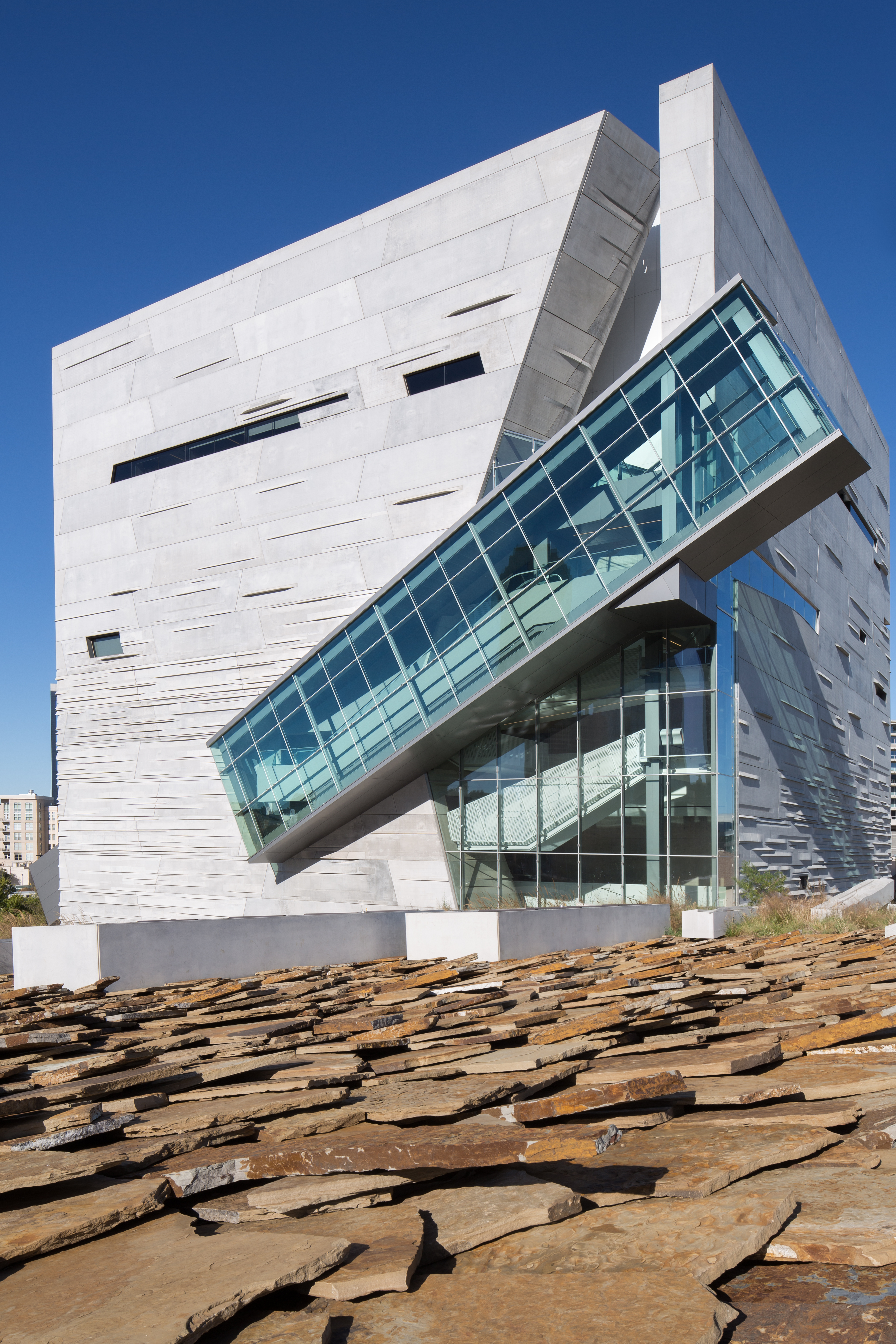 Designed by Pritzker Architecture Prize Laureate Thom Mayne, the Perot Museum's building has been called "the boldest piece of modern architecture to hit Dallas" by the Dallas Morning News. The building uses creative design techniques to create a unique and sustainable Dallas icon.